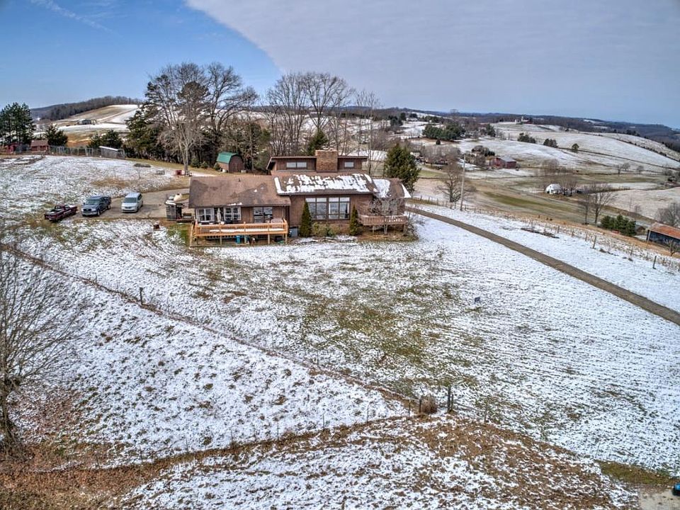 Pastoral tranquility describes this one of a kind architecturally designed home built on 16.63+/- acres. The home sets just perfect on this land to enjoy the views, sunrise and amazing sunsets. On the main level the home features a large foyer, Great room with fireplace, dining area with floor to ceiling windows, large eat in kitchen with gas cooktop, double wall oven, sunroom off the kitchen, master bedroom with private deck and master bath with walk in shower. Two additional bedrooms with Jack and Jill bath. Laundry room off the kitchen. Upstairs offers a library/study with a cozy fireplace, bookshelves and half bath. Storage room and storage in the walk in attic. Deck off the kitchen and an inviting front porch to take advantage of the views. The land has pastures and almost an acre that is wooded. Cross fencing with some that is electric. Large outbuilding, chicken coop and two additional small barns. The land has been designed to have cattle or horses. You must view this property to see all that it offers to appreciate it.