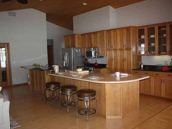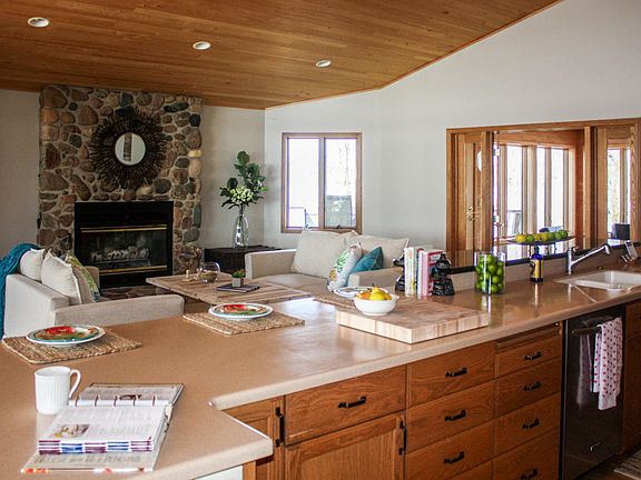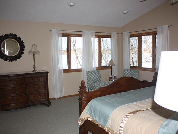 Spectacular lake views of Little McDonald and Kerbs Lakes! Over 300 feet of sandy beach on Little McDonald and 440 Feet on Kerbs, great fishing/swimming on both!. Updated,Beautiful 4000 sq ft, open concept, large dining area and counter seating for 10-Great for entertaining! 2 fireplaces granite and corian counters, New appliances, Gas stove. 4 bedroom, 3 bath, office, sunroom,modern home w/custom cabinets and storage galore! Lake views from every room of the house. Walkout lower level beautifully landscaped on 4.15 private acres. Plus separate 960 ft storage shed for all your toys! You will be delighted by the openness and abundance of natural light in this home-Don't miss this one!