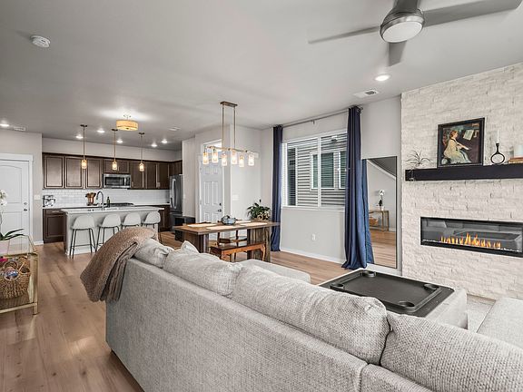 This stunning attached home is better than new! Located in the desirable Timnath Lakes Subdivision, the 2-story home features 3 bedrooms and 3 bathrooms, along with an abundance of upgrades and customizations. On the main level, the floorplan is open and inviting. The kitchen features quartz countertops, a large kitchen island with overhang for additional seating, stainless steel appliances, pendant lighting and gas range/oven. A cozy fireplace has been added to the living room, and the natural lighting is sure to impress! The three bedrooms are all upstairs, including a spacious primary with ensuite featuring dual under-mount sinks and walk-in shower. Laundry access is upstairs as well for added convenience. Outside, you will find a private, fenced in backyard with large patio for entertaining. Location provides easy access to shopping, restaurants and Main Street Timnath!