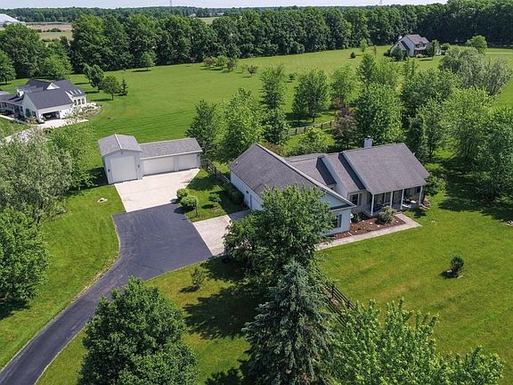 ANOTHER FINE HOME FEATURED BY SANDY RAINES This wonderful home is situated on a private, five-acre lot in Powell, Ohio. This home features 3 bedrooms, 2.5 bathrooms, and over 2,200 square feet of move-in ready living space. Quality amenities of this home include the nine garage spaces, 5 acres of private wooded property, and abundant natural light throughout. The charming foyer welcomes you to the home where you will find a traditional dining room space with two large windows and access to the main living area. The heart of this home is the lovely kitchen that has sightlines to the private tree-lined lot out back. Here you will find stainless steel appliances, granite countertops, tile backsplash, and a large center island. The living area is an open concept and just steps away from the kitchen is a lovely eat-in space, as well as a large great room with a cozy fireplace. You will also find access to a screened porch and a sunroom as well. The bedrooms are split between each end of the home. On one end, you will find two spacious bedrooms and a full bathroom, and on the other end you will find the relaxing owner suite with plush carpeting and access to the beautiful sunroom. The en-suite bathroom boasts a glass door shower, a soaker tub, and a large vanity with double sinks. This home does have an unfinished basement space providing extra storage space. Outdoor living is what this home is all about. You will find five acres of property with a section around the home that is fenced. There is a porch just off the screened room that provides a nice place to catch some sun! Additional amenities too many to list! Call today to schedule a showing! For 24-hour recorded information, call 1-800-498-1480 and enter code 2830 or visit www.therainesgroup.com/property/4486ClarkShaw for a full photo gallery, complete property information, and more.