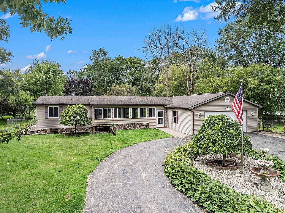 So much space! This home has almost 3000 square feet of finished living space and sits on over an acre of land. You'll have plenty of space to spread out on the main level, where you'll find two family rooms, a living room, and a screened porch, as well as a large, eat-in kitchen with plenty of prep space & skylights bringing in natural light. The split-bedroom layout means more privacy for the primary suite, where you'll find an ensuite bath and walk-in closet, with a convenient laundry room accessible through the bath. Three more spacious bedrooms & a full bath complete this level. In the basement, a guest/in-law suite features a second kitchen & dining area, full bath, & bedroom, as well as a flex space that could be a home office or sitting room. Home also features a whole house water treatment system. The beautiful, tree-lined acre has a pole barn with 200 amp service and cabinets for extra storage, a great space for a workshop. Another shed offers storage space. Convenient location with easy highway access. Come and see this home today!