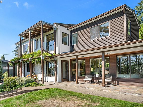Airy and bright, this architect designed home offers views from every room. Modern and warm, this house has a commanding presence from the street. Inside, double story ceilings create a feeling of volume and invite the outside in. Original parquet floors cascade through the living room, complete with built-ins and a gas fireplace. A gorgeous Neil Kelly kitchen is a cooks dream. High end Dacor appliances, bookend matched cabinet doors, and slab counters are just a few of the wonders of this culinary creative space. 2 spacious bedrooms, and a thoughtfully updated bathroom complete the main floor. Your journey to the upper floor is met with a sky bridge and a cozy nook. The primary suite is spacious without being ostentatious. A generous walk in closet and built dresser make sure there's room for all your things. The primary suite is complimented by a beautiful ensuite bath, with large double headed shower with bench, and new quartz counters. A 4th bedroom finishes the upper floor. Generous outdoor spaces give great options to enjoy the beauty of the PNW. But the seller's favorite was drinking a glass of wine on the covered front porch. Come embark on your next chapter in this one of a kind home. [Home Energy Score = 7. HES Report at https://rpt.greenbuildingregistry.com/hes/OR10060365]
