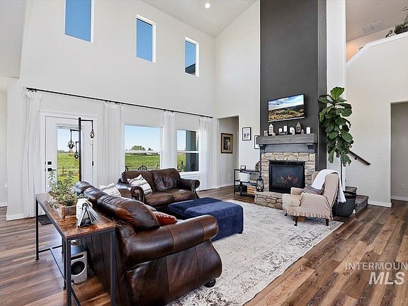Welcome to your dream home nestled in a serene small-town setting. This stunning property, built in 2019, offers the perfect blend of modern luxury and peaceful country living. Sitting on a spacious acre of land, this home boasts 6 bedrooms, 4 bathrooms, and a 3-car garage, providing ample space for family and guests. Step inside to discover a beautifully finished interior that exudes warmth and elegance. The open-concept living area features high ceilings and large windows, allowing natural light to flood the space while offering picturesque views of the mountains to the south. The gourmet kitchen is a chef's delight, complete with high-end appliances, granite countertops, and a large island perfect for entertaining.The master suite is a private oasis with an en-suite bathroom, walk-in closet, and tranquil views. Additional bedrooms are generously sized, providing comfort and privacy for everyone. The bathrooms are tastefully designed with modern fixtures and finishes.