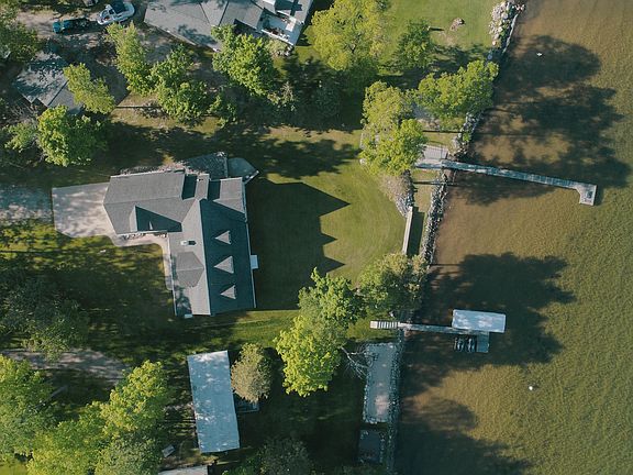 Beautiful Cape Cod home & 120' on Hubbard Lake w/ ease of living. 1st floor: 2 maste BR suites w/ panoramic lake views. Master Suite 1 has cathedral ceiling. Suites include walk-in closets, private baths w/ dual sinks, spa, & shower. Living room has lake view; large kitchen and dining rooms. 2nd level has 2 large BR's, full bath, & family room. Finished bsmt has game & family rooms w/ knotty pine accents, bath, large workshop w/ walkout double doors. Other features: full length dual covered porches, boat ramp, concrete retaining wall.1400 sq ft garage can fit 3+ cars w/ bonus area that could be additional living space. Other features: natural gas baseboard heat, central air; air cleaner, Pella windows, back-up generator, crown trim; maple & ceramic flooring & 3' wide interior doors.