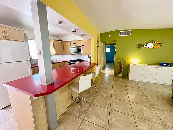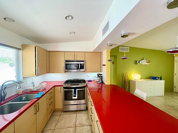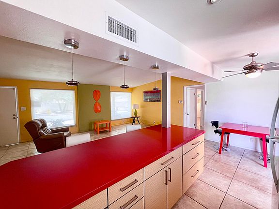 This charming 2 bedroom, 2 bath home is situated in the heart of Palm Desert and boasts over 1000 sq ft of living space. Perfectly positioned near College of the Desert, restaurants, shopping, and just a short drive to the mall, its central location offers unparalleled convenience. The bedrooms are separated, ensuring complete privacy, a large den area & an open floor plan with the cutest modern kitchen. The primary suite includes a separate entrance, adding an extra layer of privacy. The property also includes a large front-facing covered courtyard, perfect for outdoor relaxation. Stylish and super cute, this home is an excellent rental opportunity in a prime location.
