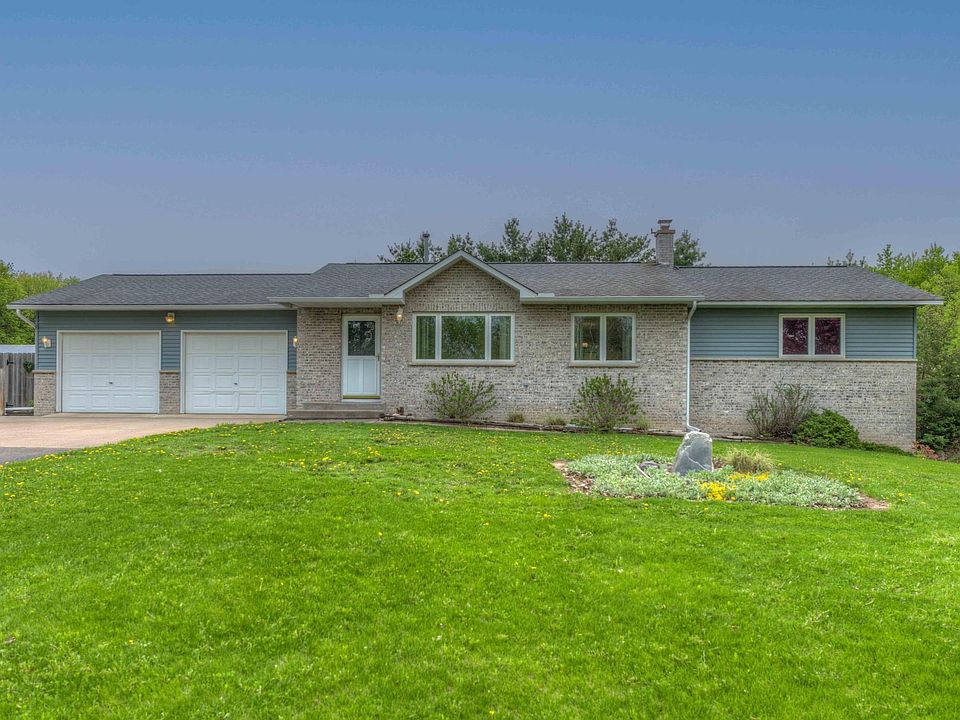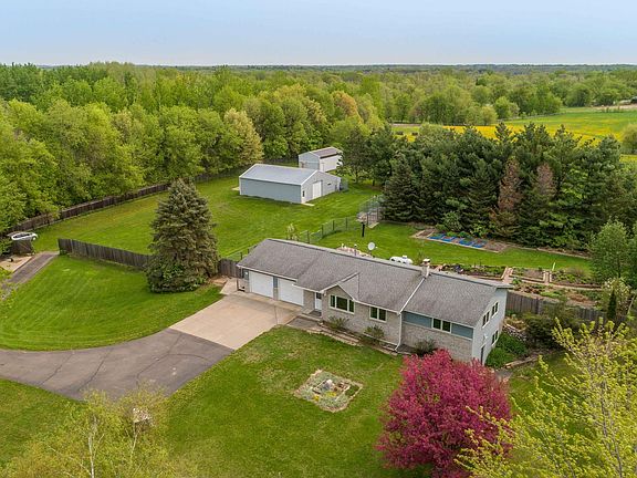 Welcome to this beautiful rambler walkout on 8 acres currently set up to host dogs and horses or livestock. This is country living at its finest with updated main floor living, beautiful gardens, views of a lake and acreage to sprawl out on. The basement is finished with opportunity to put your own touch to it. The stall barn has its own furnace and A/C which could be used for someone running a business, and the additional pole building has great space for storage. There is a separate driveway going back to the outbuildings in addition to the driveway up to the home. This property has endless opportunities for a business owner, hobby farmer or someone who just wants some peace, tranquility and space.