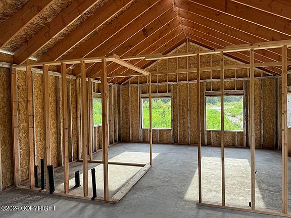 1.67 acre lot on 2,400 ft airstrip, Gravel driveway, pad and unfinished 20x30 building on concrete slab with plumbing stubbed out. Property includes well. Power is at the street.