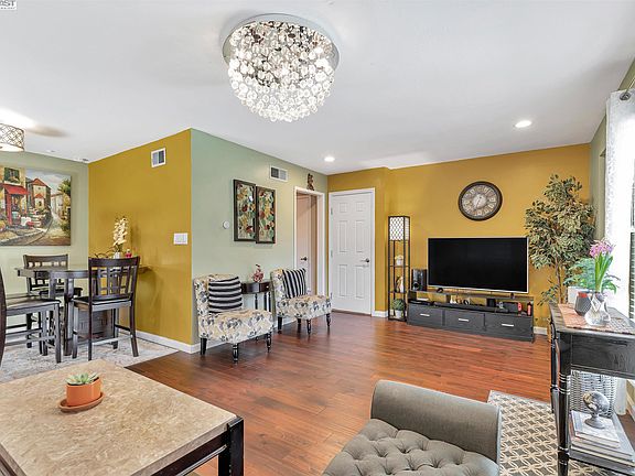 ***YOUR WAIT IS OVER*** WELCOME to this Charming, End-unit, Single-story townhome with a wrap-around lot to enjoy outdoor sitting, play, and gardening. This NE-facing, 2-bedrooms and 1-bath townhome features 905 sq.ft interior space in one-level with an open, bright, and welcoming feeling.The spacious living and dining opens to the kitchen with granite countertop and wooden cabinets. Laundry room is next to the kitchen. The bathroom has been recently updated with modern finishes. The living spaces and bedrooms have been recently updated with beautiful Acacia hardwood flooring. A newly installed gas-fireplace and chandelier in the living area will WOW your guests. Spill over to the outdoor sitting area accessed from the living room to entertain or enjoy your quiet time. The home also comes with lots of storage and parking options. There is a one-car attached garage with a driveway, and one uncovered parking assigned. Located in the coveted PLEASANTON MEADOWS neighborhood, the home is walking distance to Fairlands Park with tennis courts/kids playground, Fairlands Elem school, groceries, Stanford Medical Center, and restaurants. Easy access to walking trails, BART and the Highways. No rental Restrictions. HOA includes water, exterior and pool.