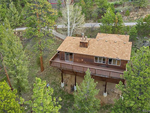 THIS IS IT! This is the dream home you have been waiting for. The best views in Evergreen can be yours! Welcome home to this unique blend of rustic contemporary and mountain charm, nestled quietly and conveniently above downtown Evergreen and Evergreen Lake. This main floor living retreat boasts beautiful oak hardwood floors, an open kitchen featuring granite counters and breakfast bar, a spectacular great room with wood burning fireplace, and picturesque views of Mt. Evans and Alderfer Three Sisters Park. When more space is needed, the walkout lower level is just as incredible. You will never want to leave this warm and inviting space with enchanting views from every room. There are three additional large bedrooms, bathroom, living room with wet bar, and a wood burning fireplace. You will love living outdoors with the expansive redwood deck, rock outcroppings, trees, and stream, all while enjoying the most captivating views Evergreen has to offer. Listen to the tranquil sounds of nature as you relax in this extraordinary mountain setting. Come see for yourself, this one will not last!