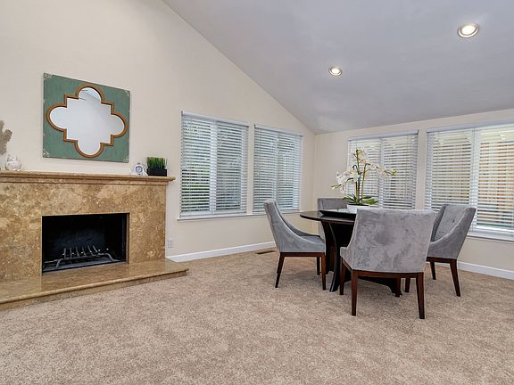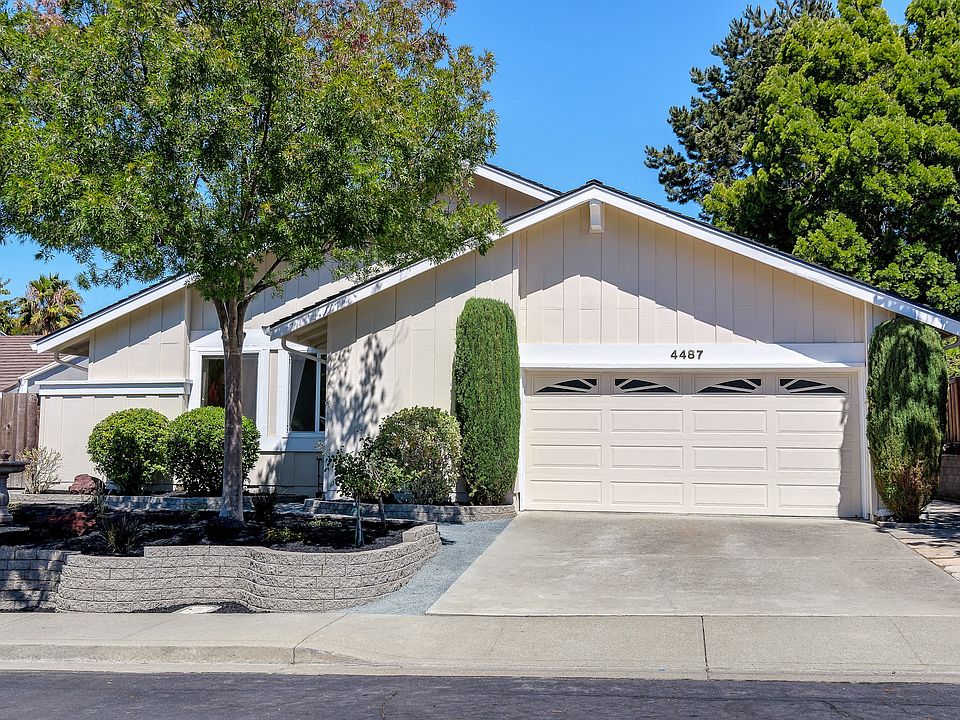 Spacious, airy and beautifully updated 1,765 sq ft single-story home in the Crossings community, with designer touches and nicely landscaped yard—very well-maintained and move-in ready! * 4 bedrooms, 2 bathrooms, lots of closet space. * Master bedroom with walk-in closet and master bathroom with cultured onyx shower and vanity counter. * Formal living room and dining area featuring limestone fireplace, vaulted ceiling, plenty of space and lots of windows and natural light. * Kitchen and breakfast area with spectacular travertine stone flooring and original medallion, granite counters, and stainless appliances. * Ceiling fans in master bedroom, great room and kitchen/family room area. * Large redwood bi-level deck, leading to attractive stone path and drought-tolerant landscaped backyard. * Laundry area in 2-car garage and plenty of storage space including drop down ladder to attic. * Recessed lighting, dual-pane windows, updated blinds and new doors throughout home. * Schools: Highlands Elementary, Foothill Middle and Northgate High. * All the benefits of living in the wonderful Crossings community—3 community pools, 8 tennis courts, pretty greenbelt, private dog park and optional pre-school($95/month HOA dues).