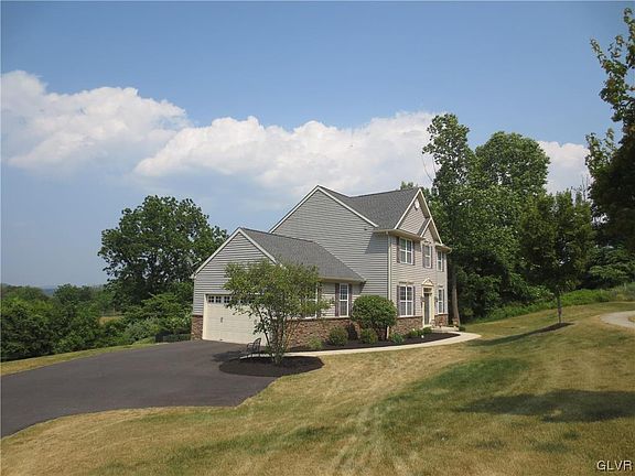 Beautiful Colonial style home located on a cul-de-sac street in the desirable Southern Lehigh School District. The home features a two story center foyer with hardwood floors throughout on the first level, decorative custom window treatments, formal dining room, office with double French doors, and family room with fireplace. The kitchen includes granite countertop, a center island, maple cabinets, breakfast area opening to a spacious family room for ease of entertaining, and sliding door leading to the deck. Large master bedroom with tray ceiling and walk-in closet, soaking tub, and shower with glass doors. Two additional nice sized bedrooms, a full bathroom features access from the hallway & a bedroom, and a laundry room on the second floors. Professionally finished walk-out basement offers a recreation room, home gym and sliding doors leading to the in-ground heated pool and gorgeous view with one acre property.