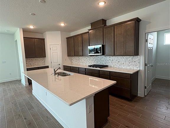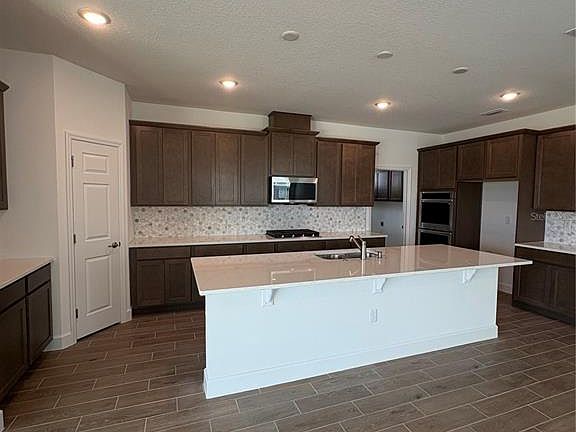 Under Construction. Discover the perfect blend of style and functionality in this stunning Acacia plan with 9'4" first floor ceilings, offering 5 spacious bedrooms and 3 full baths, including a luxurious 1st floor Primary Suite, and a private Guest Bedroom near the front entry. The open-concept Great Room flows effortlessly to the large covered Lanai—ideal for entertaining and enjoying outdoor living. The gourmet kitchen is a chef’s dream, featuring 42" cabinets with crown molding, quartz countertops, a large center island, and stainless steel appliances including built-in gas oven and cooktop. Beautiful tile flooring enhances the 1st floor main living areas, while window blinds are included throughout. Upstairs, a versatile Loft provides the perfect space for a media room, additional gathering space, or home gym. Thoughtful touches continue outside with decorative stone accents on front exterior, attractive landscaping, and a brick paver driveway and lead walk that add to this home’s outstanding curb appeal. Great community amenities include covered Playground and walking trails featuring outdoor exercise equipment, with future amenities to include pool and cabana. Oakview is conveniently located just 1 mile from SR 429 for easy commuting, and only 11 miles from Wekiva Springs State Park and 12 minutes from Lake Apopka. Additionally, the Community is close to the upcoming new Wyld Oaks development featuring a 3 acre medical campus and extensive retail spaces.