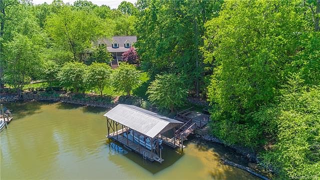 Custom full brick lakefront home w/boathouse and floating boat lift! Just imagine sitting on the magnificent wrap around porch overlooking lake wylie and admiring the wildlife. Wake up to lake views from the spacious main level master-suite w/walk-in closet and jacuzzi tub. Home features a two story foyer, floor to ceiling windows w/gorgeous lake views, oversized master on main, large living room w/stone fireplace and built-ins, large kitchen with ss and black appliances, gas stove, high quality constructed cabinets w/pullout shelves and 2 pantries. 2nd floor features 2 over sized bedrooms and a full bath. All surrounded by lush landscaping w/irrigation and a greenhouse for the gardener at heart. The kids will love playing in the tree house out back w/wrap around deck. Elevator access from parking level to main as well as stair access to fully heated and cooled 840 sqft 2 car garage w/ an additional 528 sqft wrap around storage that is also heated and cooled. No HOA. Welcome Home!