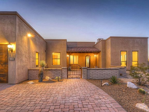 Outstanding, brand new 2019 Paul Rondelli Southwestern Contemporary high on a hill on a one acre lot in the Catalina Foothills with mountain and sweeping Tucson city views. With 3,515 sq. ft., 4 bedrooms, soaring ceilings and views from every room, this is one you won't want to miss. Concrete paver driveway leads to covered entry with arched wrought iron entry door, into bright open floor plan with family/living/dining/kitchen and breakfast area, fireplace and wet bar combination serving as great room, with separations for great entertaining. Pella windows, 8' knotty alder doors, color integrated scored concrete floors, high end Danze plumbing fixtures throughout, security system and fully wired for stereo with two surround sound systems. Chef's kitchen features rustic cherry cabinets, granite counters, stainless steel DCS appliances including 48" duel fuel range. Gracious master suite with sweeping city views and fireplace offers bath with Cappuccino marble surrounds, dual shower heads with body spays, rain shower, walk-in shower and claw foot soaking tub. Landscaped yards, covered rear porch, 3 car garage and so much more.