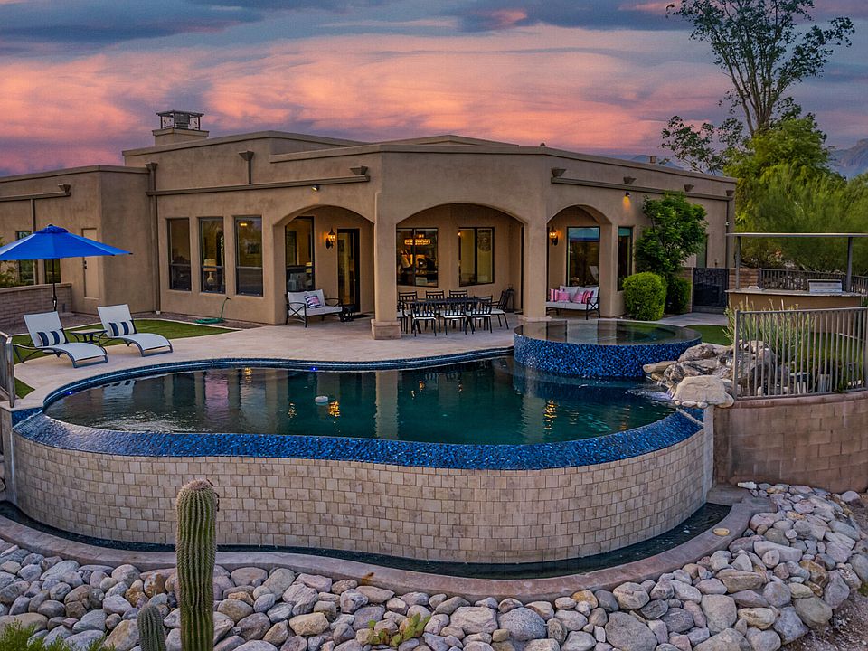 Range pricing. Seller will accept or counter offers btwn $1,399,000 & $1,450,000. Elegant home w/breathtaking views of the mountains & the Arizona sunsets! Beautiful landscaped backyard includes a sparkling salt water pool & spa, covered patio & plenty of space for outdoor dining & relaxation. Open spacious home with two Family Rooms separated by a fireplace & abounding windows creating a warm & inviting atmosphere! One Family Room has a wet bar & built in wine cooler. Eat-in kitchen has island w/breakfast bar perfect for both everyday meals & entertaining guests! Stainless steel appliances, huge gas range with two ovens. Master bedroom has a fireplace, entrance to the backyard oasis, walk-in closet, separate shower and tub, dual sinks and a vanity. Make this luxurious retreat your own!