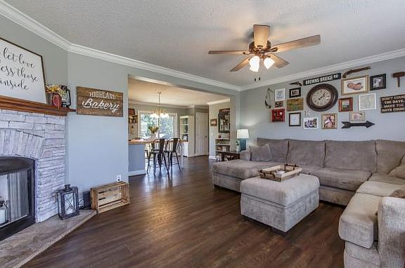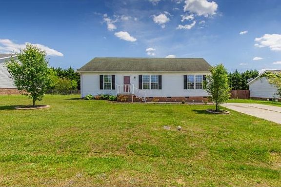 1 STORY 3BR/2bath in Gibsonville! 1373 sq'. UPDATED w NEW flooring thruout, NEW tile backsplash, NEW deck/patio & fresh paint! Family rm w dec FP. Kitchen w HUGE CUSTOM island/bar seating. MBR w 2 closets, bath w tile, garden tub & sep shower. 2 add'l BR w W/I closets. Laundry & full bath on hall. Paved driveway w sidewalk to front & side entry.FLAT lawn & fenced rear yd.DECK & PATIO w FIREPIT. MOVE IN READY!