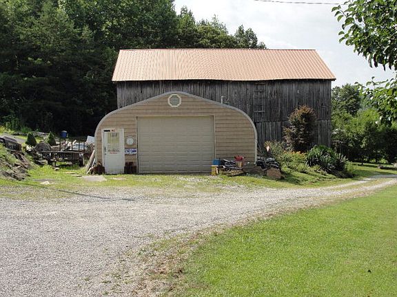 Lovely, rustic, updated ranch with unfinished basement and 12 acres. Updated kitchen with soft close drawers & granite countertops, living room with hardwood floors and wood walls, dining room, two (possibly three) bedrooms, two baths, room at back could be used as third bedroom, above ground pool with decking,central H/A with backup propane heater, large front porch and 12 surveyed acres. Can be bought with 25 acres across the street.