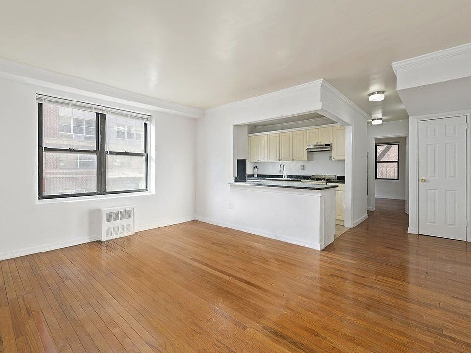 NO FEE This spacious, one bedroom, one bath apartment is a corner unit that has windows facing south from every room allowing an abundant amount of natural light in. The kitchen features a large granite breakfast bar and stainless steel appliances, including a full size dishwasher! This unit also offers ample closet space, hardwood floors, crown molding throughout, and an open floor plan that's great for entertaining. Building Amenities include: On-site super, 24 hour laundry, elevator. Enjoy having the natural beauty of Fort Tryon Park, and breath-taking views of The Palisades and Hudson River. The A express train is located directly across the street from the property and the 1 local train is just two blocks away. Major expressways and the GWB are also within close proximity making the commute in and out of the city favorable!