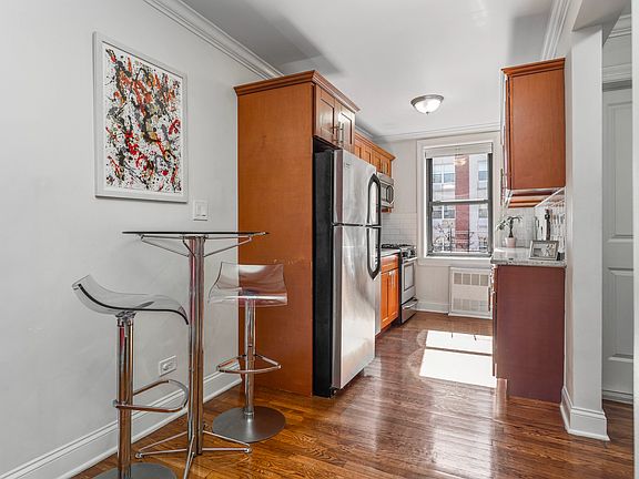 Welcome to Residence 6F at 4489 Broadway - a SOUTH FACING and sun-drenched, fully renovated XL one bedroom at the highly sought after Fort Tryon Gardens, an established cooperative in Hudson Heights. As the largest 1BR in all of Fort Tryon Gardens, you can live in comfort and without any size limitations to your furniture. Best part? LOW MAINTENANCE. This turn-key home has it all. Enter your new home through a graceful foyer that has the latest video intercom technology. To the left is a fully-renovated windowed kitchen with a separate dining area and is equipped with a full-size stainless range, dishwasher, refrigerator, modern touchless faucet, tiled backsplash, and bountiful cabinetry for all of your kitchen storage news. Straight ahead is a tastefully renovated windowed bathroom decorated with mosaic tiling, full-size soaking tub, glass sliding doors, and oversized vanity. Next, you will find a light infused bedroom that easily fits a queen-size bed, desk, a sitting area, and a boudoir of any size. The large living room is equally as impressive in its dimensions as it currently fits an XL designer sectional AND day bed from Ligne Rosset. There are three (3) large and deep closets throughout the home (2 in the bedroom). The newly painted home features hardwood flooring, crown molding, designer light fixtures with light dimming technology, and customized blackout shades from Levolor in every room for extra privacy. Fort Tryon Gardens is nestled against one of New York City's most picturesque parks, Fort Tryon Park which is a true oasis for nature lovers and art lovers alike. The park's 67 acres include 8 miles of winding pathways, a heather garden, stunning views of the Hudson River, and The Cloisters of The Metropolitan Museum of Art. Bennett Park and Fort Washington Park are nearby as well. Building amenities include on-site laundry, bike storage room, enclosed storage units (waitlist), live-in superintendent, elevator, and indoor parking garage (waitlist). Pets welcome! 90% Financing allowed. Transferred in the home purchase is a position on the queue for the largest storage unit available in the building. Commute to Grand Central in 25 minutes - transportation is directly across the building at 190th Street Subway (A line) or the 1 Train at Broadway. Fort Tryon Gardens is also serviced by the M4 and M98 bus, not to mention the GW Bridge Bus Station at Broadway and 179th Street which is a hub for several bus lines, including NJ Transit, Greyhound, and Rockland Coach. For drivers, there is plentiful garage parking in the vicinity. Easy access to I-87 or I-95 highways for a weekend getaway out of the city. Fort Tryon Gardens is surrounded by grocery stores, restaurants of all flavors, big name retailers, coffee shops, and wine shops. Every convenience is at your fingertips. Book your private tour to view 4489 Broadway, 6F today!