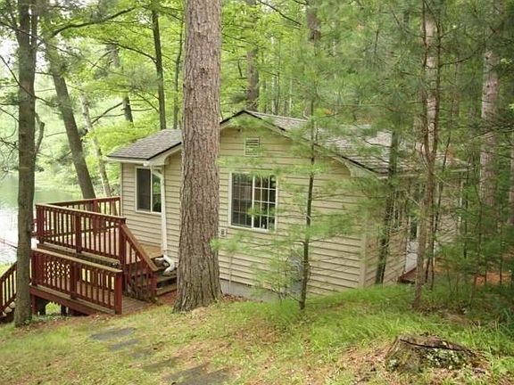 Cute & cozy updated year round cottage on Clear Lake featuring 1 bedroom, 1 bath, an open living room/kitchen combination, & a wraparound deck offering wonderful views overlooking the lake. A newly added spiral staircase provides quick access to the mostly finished lower level with guest space, storage space, and a gas space heater for those cooler nights. The lot enjoys mature white pine, red pine, & oak tree cover, with the property facing south for day long sun exposure. The cottage is situated close to the shoreline giving you more of an "on water feeling" & has newer vinyl siding, thermopane windows, & roof shingles. Enjoy all that a clean, clear lake offers in this updated, low maintenance cottage!!
