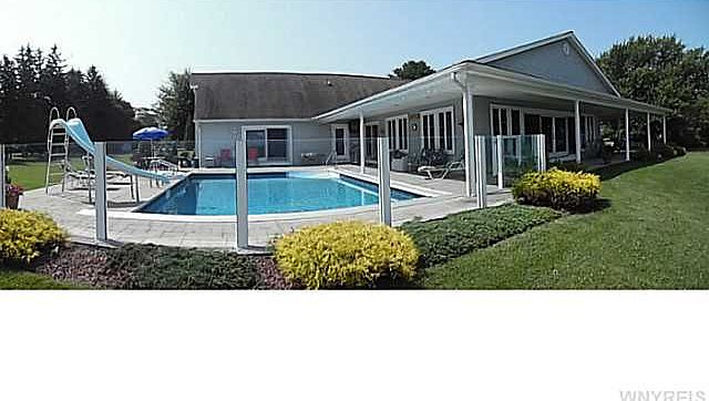 VR pricing. Sellers will consider offers between $499,900 and $569,900. WATERFRONT! Custom built 3 bedroom, 2.5 bath ranch! Open concept! Featuring large living room w/wall of windows offering spectacular panoramic view of Lake Ontario and the Canadian shoreline! French doors and sliders leading to stamped concrete patio w/IG pool & hot tub. Formal DR, spacious, eat in kit w/large breakfast bar and reassessed lighting. Spacious family room with gas fireplace. Master suite with whirlpool tub and shower. Full/dry basement with exercise area and 8 foot ceilings. First floor laundry. 2.5 car/attached garage w/heat, electric, water and floor drains. Central air! Almost 2 acres of land w/over 100 ft of waterfront! Concrete breakwall and patio plus a boat ramp. Private financing available!