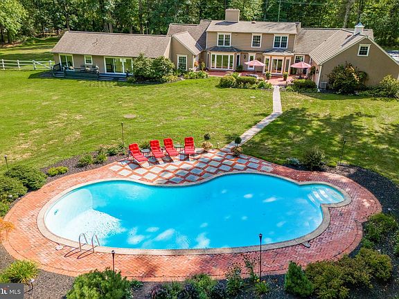 Welcome to your dream home, a stunning mini estate featuring a 2-story expanded cape cod nestled on six picturesque wooded acres, offering the perfect blend of classic elegance and modern convenience. As you approach the property you are greeted by two separate gated main entrances leading to circular driveway, ensuring both privacy and grandeur. Entering through the main entrance, the foyer welcomes you with formal marble flooring and a newly renovated wet bar, perfect for entertaining. The large dining room is ideal for hosting dinner parties and family gatherings, while the expansive living room features a cozy fireplace. Moving through the foyer, you enter the spacious family room which boasts heated terra cotta flooring and another fireplace, providing a comfortable space for relaxation and entertainment. The double kitchen is a chefs dream equipped with modern appliances, ample counter space and custom cabinetry. The kitchen includes a charming breakfast nook surrounded by windows, offering a perfect spot for morning coffee while overlooking the beautiful backyard. Additionally a butler’s pantry enhances the kitchens functionality and storage. Marble tile flooring in the kitchen adds durability and charm. The entire back of the house is adorned with windows and glass doors, providing stunning views of the expansive outdoor space. The main house features five generously sized bedrooms with hardwood floors. On the first floor the luxurious master suite is a true retreat, complete with a newly renovated expansive master bath featuring heated floors, walk-in shower and elegant fixtures. Another bedroom on the first floor also boasts its own full bath, making it perfect for guests. A convenient half bath is located downstairs for visitors. Ascending to the second floor you will find three additional bedrooms, each designed for comfort and privacy. An upstairs bonus room offers versatile space that can be used as an office, playroom or media room. The full bath upstairs is meticulously designed, combining functionality with high-end touches, insuring comfort for all occupants. Adjacent to the main house the separate in-law suite offers a private living space ideal for guests or extended family. This suite features its own living room, dining room, kitchen and laundry facilities. Two bedrooms and a full bath provide ample space, while the back porch offers a tranquil spot to enjoy the surrounding nature. Outside the expansive property truly shines. The large back and side lawns are perfect for outdoor activities, gardening or simply enjoying the great outdoors. A picturesque 1 acre lily pond with an island adds a touch of tranquility and natural beauty, creating a serene oasis where you can unwind. The large back brick terrace of the main house features a walkway leading to a heated swimming pool, perfect for year-round fun and relaxation. The prime location allows you to enjoy the charm of nearby Peddlers Village and Carversville. With close proximity to the vibrant towns of Doylestown and New Hope, you’ll have easy access to a variety of shopping, dining and cultural experiences. This charming home is more than a house. It is a sanctuary that offers a perfect blend of classic elegance, modern comfort, privacy and natural beauty.