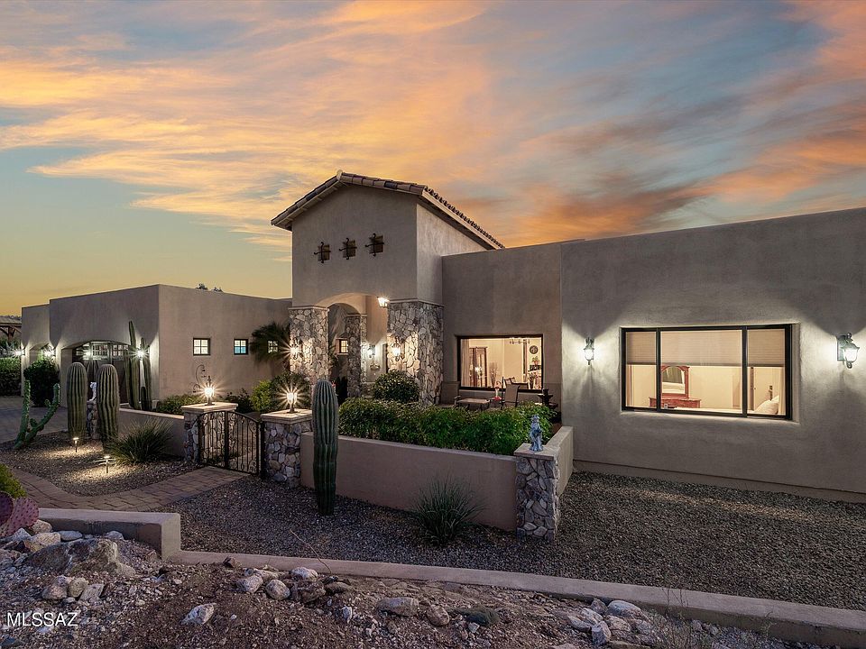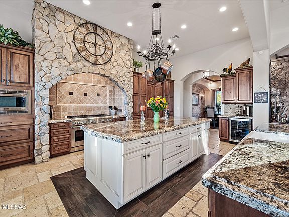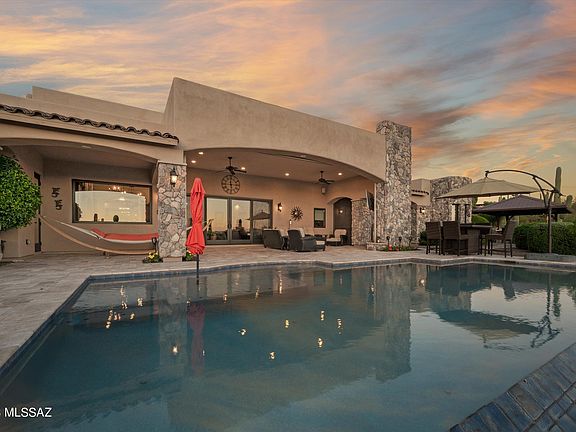 This Tuscan style 2016 built 4/3.5 Foothills estate offers incredible luxury, high end finishes, and entertaining options few other properties can provide. Inside this estate is finished with top of the line materials including tumbled travertine flooring, barrel vault ceilings, oversized windows, and premium kitchen appliances completed with supersized granite slab countertops. Large rooms, split bedroom plan, and high end spa like baths make living here feel like a palace. Outside the estate reveals some of the best outdoor living available in Tucson. Extensive marble patios overlook a resort-like infinity edge pool. Fully finished outdoor kitchen/bar offer views of at least 3 mountain ranges encircling Tucson perfect for weekend entertaining. Relax in the evening to watch the city lights envelope you as the Arizona sun sets from this one of a kind estate.