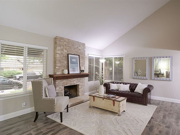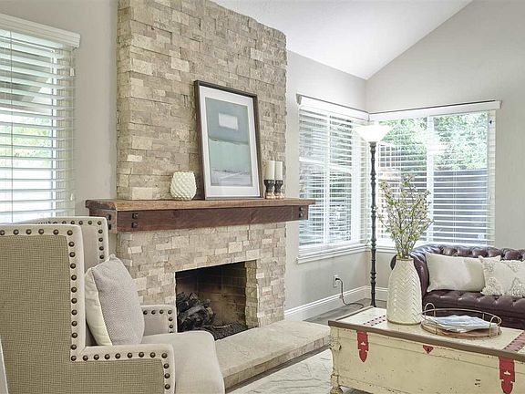 Beautifully updated and well cared for home on a great court location. You are welcomed into a cozy living room with stone fireplace, high ceilings, tons of natural light and rich vinyl plank floors throughout. Large, open family room is open to a light filled kitchen with stainless steel appliances. The secondary dining area and half bathroom make for a perfect living/entertaining space. Upstairs are four nice sized bedrooms, including the primary suite with spa like bathroom and an additional hall bathroom. Large landscaped backyard with paved patio for outdoor living. This home is situated in desirable Crossings neighborhood which features gorgeous greenbelts, private dog park, tennis, clubhouse and this home has easy access to one of the three swimming pools.