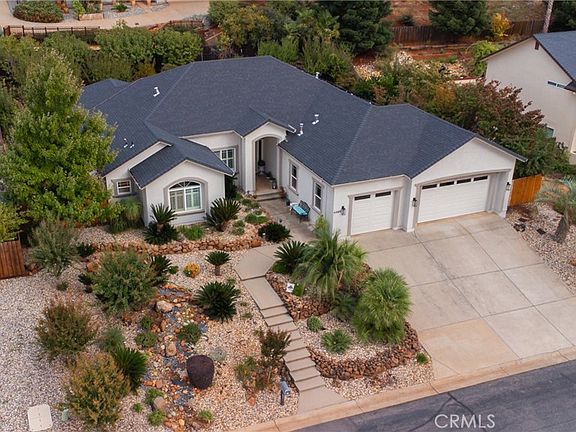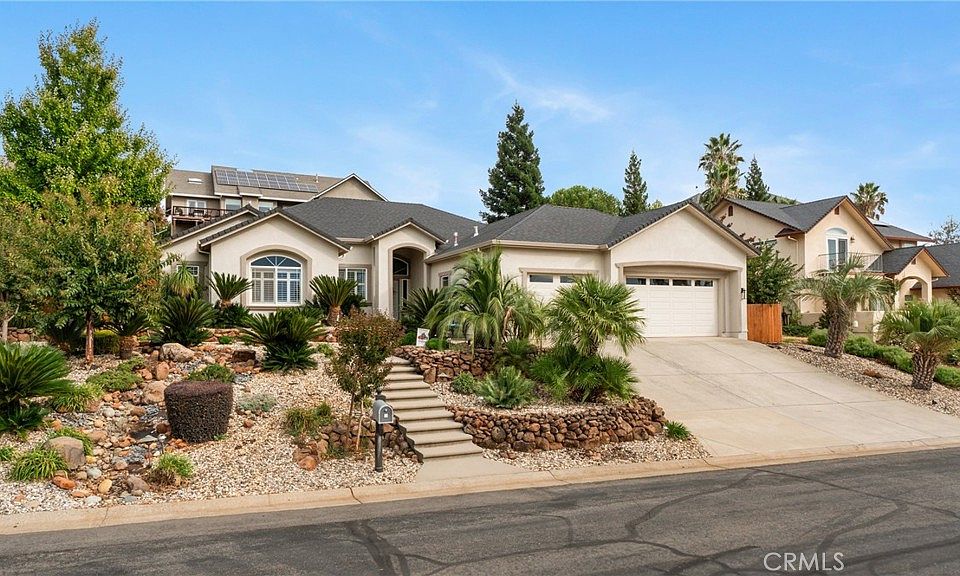 Welcome to your new home in the beautifully developed gated neighborhood of Casa Del Rey, situated close to the scenic Lake Oroville, where breathtaking sunset views grace every evening. Positioned across from association-owned open space, this charming property offers both privacy and a strong sense of community. Step outside to discover the abundance of mature fruit trees adorning the landscape, while the installed solar array ensures that your monthly expenses remain reduced from standard PG&E fees. Step inside and be captivated by the excellent open and split bedroom floor plan, highlighted by large picture windows in the 12-foot high living room, seamlessly merging the indoors with the picturesque outdoors. The spacious family room located at the rear of the home is equipped with a ceiling fan and a gas fireplace, creating a cozy ambiance. It opens up to the kitchen, a chef's dream featuring ample granite countertop space, maple cabinets, pantry space, and a spacious eating bar, ensuring that meal preparation is both convenient and enjoyable. As you continue to explore, you'll discover a range of delightful features enhancing your living experience. From the expansive indoor laundry/mudroom to the custom Plantation shutters and the oversized living room with its soaring ceiling, every aspect of this home exudes comfort and elegance. The well-proportioned bedrooms offer ample space, while the master suite is a tranquil sanctuary, boasting a gas fireplace, a cozy sitting area, a doorway to the rear patio, 2 walk-in closets, and a spacious en suite bathroom complete with a soaking tub, walk-in shower, and dual sink vanity. Rest assured that this one-owner home has been meticulously maintained and updated, featuring recent improvements such as a new roof (2019), fresh exterior paint (2022), newer exterior lights, stove top, microwave (2019), water heater, and bedroom carpet (updated within the last 5 years). Outside, the beautifully landscaped grounds are adorned with meticulously tended shrubs and mature palms, creating a serene oasis to call home. With ample storage space both inside the home and in the attached 3-car garage, you'll have plenty of room to accommodate your belongings. Step outside onto the patio, unwind, and immerse yourself in the beauty of the lush fruit trees and stunning landscape, or venture to the front for a breathtaking sunset view over the canyon. Don't miss out on the opportunity to make this warm and inviting home your own.