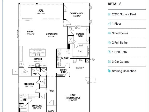 - Total interior livable area: 2,205 sqft