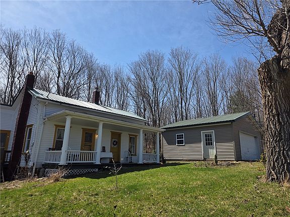 Charming Country Home with Stunning Views! This adorable home offers two bedrooms with the potential for a third, providing plenty of flexibility for extra sleeping space, large closets, or an office/studio. Nestled on a quiet road with wonderful neighbors, this peaceful retreat boasts breathtaking views of the Finger Lakes region right from the kitchen window. Kitchen flooring is recycled marmoleum, made from renewable products. The property backs up to undeveloped land with a serene creek, offering privacy and a connection to nature. Mature perennial gardens surrounding the house create a beautiful and serene environment. Inside, you'll find an abundance of natural light, colorful and cozy living spaces, and all-new appliances—including a washer, dryer, and a brand-new hot water heater. The septic system has already been inspected and approved for three bedrooms. Fully furnished option available (see exclusions). Don’t miss this unique opportunity to own a charming country getaway! SQUARE FOOTAGE ON PUBLIC RECORD IS INCORRECT TOTAL SQ FT IS 1164.