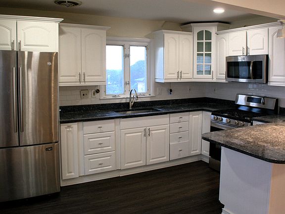 NEW bathrooms - NEW BSMT floors - NEW second kitchen. Very clean and spacious. 1FL: 3BRs, 1BA, open-modern kitchen w/ SS appliances, granite countertops, side door entry/exit, dining and living rooms. Hardwood floors throughout. Ground FL: 1BR, 1BA, large living / rec room, small kitchen, access to patio and backyard. Includes full use of driveway (3 cars). Easy access to major highways, shops, groceries, and restaurants. Move in ready. Tenant pays all utilities. 1 mth Broker fee. Req: Proof of ID and income, excellent credit score and history, and landlord reference. No pets please.