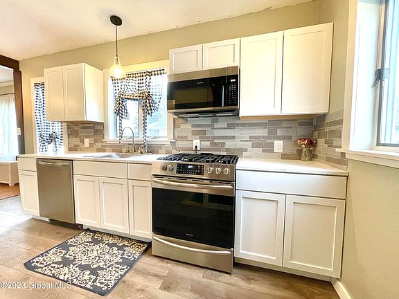 Super cute bungalow located in a wonderful neighborhood in the Port Schuyler section of Watervliet. This two bedroom two bath home features beautiful hardwood floors, an updated kitchen, and a large living room perfect for entertaining. The beautiful three season porch provides a nice spot to enter the home, and to lounge on a nice day. The full basement and expansive three car garage give you a nice place to complete projects and provides tons of extra storage.
