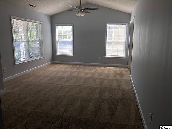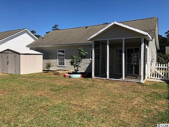 Cozy 3 bedroom 2 bathroom home w/front porch, screened in back porch and fenced in yard over looking the pond. This home has an additional storage shed in the spacious back yard. The living area has vaulted ceilings and master bathroom dual sinks and walk in closet. Literally 1.5 miles from Hwy 31 and quick easy access to the beach, shopping, restaurants and more