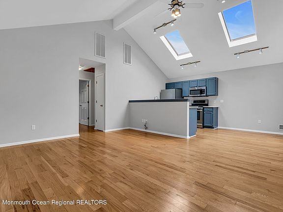 ** SINGLE FAMILY HOME ** You will LOVE this RANCH in BRICK, NJ. 2 bedrooms, 1 full bathroom, vaulted ceiling, OPEN FLOOR PLAN, hardwood flooring, skylights & plenty of sunshine. Granite counters, stainless steel appliances & open to the great room. The bedroom has a slider with direct access to the large deck/ backyard. Perfect for morning coffee. Enjoy the front porch or the large deck in the rear of the home. Maintenance free composite decking with vinyl railings is the best way to extend your outdoor living experience. Dine outdoors, play ball in the fenced yard or enjoy the sunrise on the front porch. 1 car garage * CLOSE to the JERSEY SHORE & wonderful places to dine, shop & visit. The value is here so do not miss out. This is a GREAT OPPORTUNITY to own your own home.