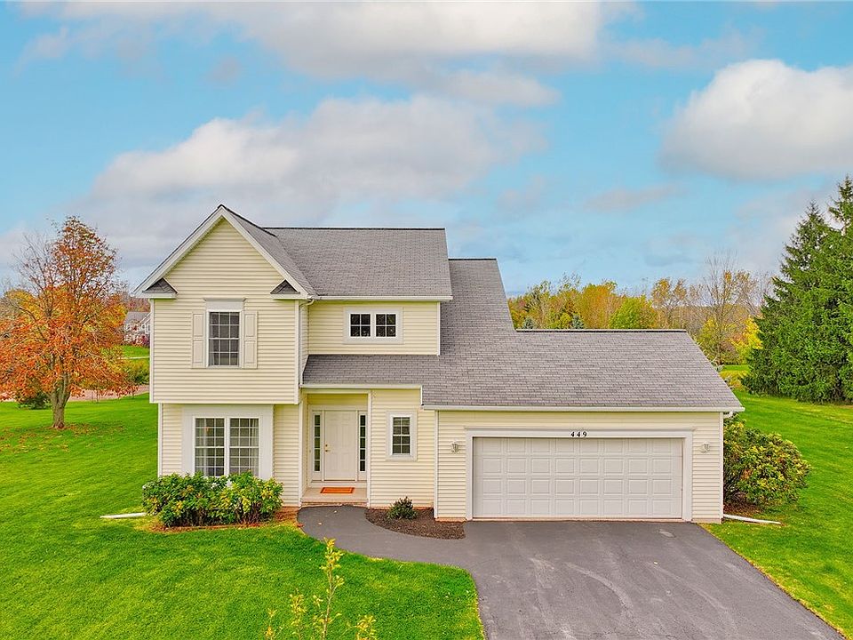 Beautiful custom-built home on 1.21-acres with a stunning park-like flat backyard and maintenance free composite deck to enjoy the outdoors. The thoughtfully designed floor plan includes three spacious bedrooms with amazing closet space in all three rooms (2 walk-in closets and 1 with a double closet)! Large primary bedroom featuring a fullbath with oversized 6 ft tub! Convenient upstairs laundry room! The main level features a formal dining room/office and a spacious great room with a wall of windows overlooking the serene backyard. Fresh neutral paint throughout! Large eat-in kitchen with stainless steel appliances, tile backsplash and luxury vinyl plank floors. Partially finished basement with pool table provides perfect extra space for entertaining. This home offers the perfect combination of function, style, and tranquility, ready for you to make it your own. Don't miss the opportunity to enjoy peaceful living in this beautifully maintained property! Delayed negotiations until Tuesday, Oct 22nd at 11:00 am. Don't miss the video tour!