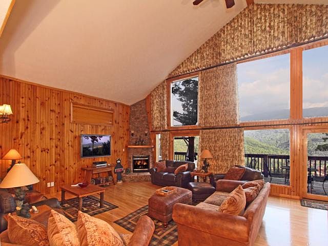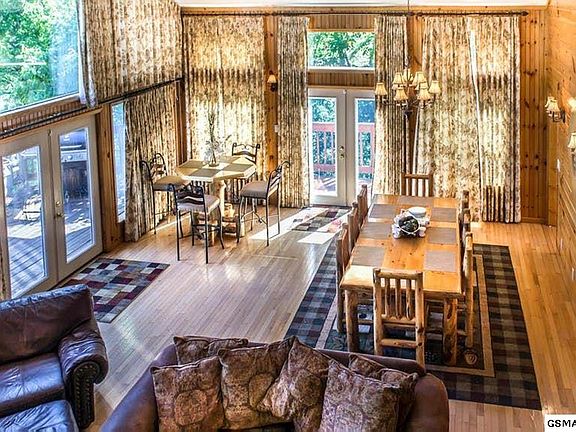 This is an elegant 7 bedroom 7.5 bath home that has great rental potential. The view is worth a million dollars and the home is one in a million. It has gleaming hardwood floors and tower wall of glass sets the tone for entertaining. The large wrap around decks offer ample room for guest to dine al fresco, while watching the twinkle of lights from Gatlinburg. This home offers plenty of room for games in the rec room, play a game of pool and enjoy the wet bar. Two decks wrap around the sides of the cabin so you can enjoy the mountain views from all sides. Cabin rental income for the last 12 months is $105,624, not including taxes and fees. Year to date $71,998. Name of Cabin: King of the Mountain