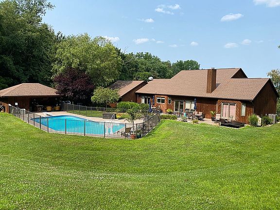3 bedroom, master bedroom first floor with jacuzzi tub, walk in closet. 2 bedrooms second floor with shared full bath. First floor guest room/office. Large family room with vaulted ceilings, eat in kitchen, dining and formal living room open concept, finished basement with attached 3 car garage. In ground pool, pool house with full bath. Home sits at the end of a cul de sac with privacy yet close to amenities and schools.