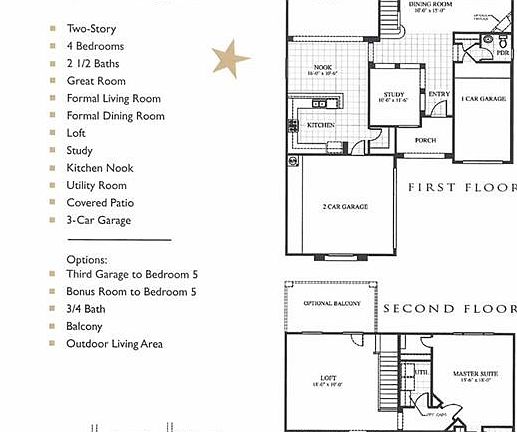 Over 3200 square feet with 3 living areas, all bedrooms up and 3 car garage. Pre sale gives you option of additional bedrooms, baths or home theater. Enter home with office/study on one side and continue into combination formal living and dining room. Kitchen open to breakfast area and great room. Kitchen features recessed lights, crown molding at staggered cabinets, granite counter tops with breakfast bar, under mount sink and oversized walk pantry. Plenty of counter top space and cabinets for storage. Top of stairs loft 18' x 19'. Master bedroom with 2 walk in closets. Master bath has spacious vanity, linen closet. separate shower and tub. Utility room up, no hauling laundry up and down stairs.
