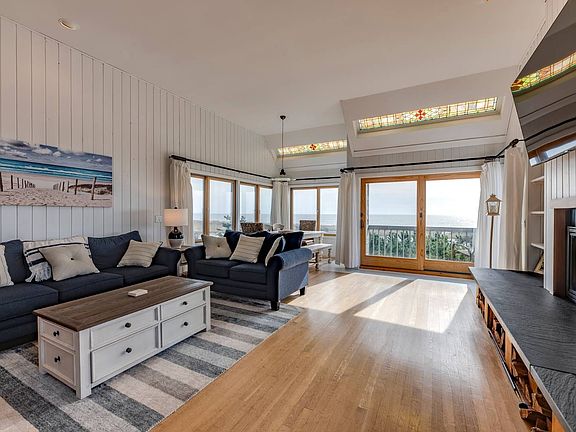 Spend your winter or summer in this relaxing oceanfront retreat! 4 bedrooms, 3 baths, multiple decks with water views, cozy living room with wood burning fireplace for those cold winter nights, heated gunite pool for those hot summer days! Nest controlled radiant heat.. private walkway to the ocean, close to main street shops and restaurants and places of worship. Breathtaking winter and summer sunsets The buyer agency compensation" / "broker agency compensation" commission is offered to participants with whom Saunders & Associates maintains a current compensation agreement.**