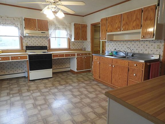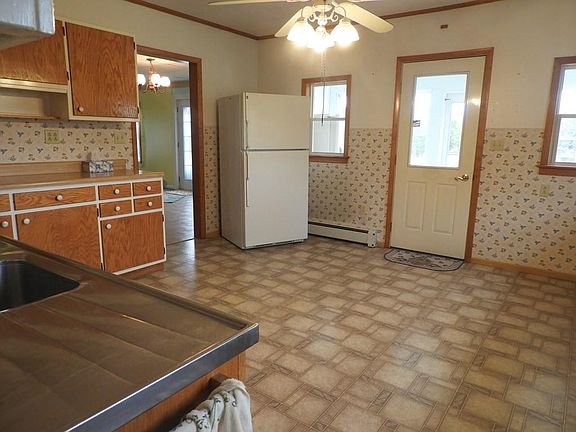 Large farmhouse situated on 7.8 acres is close to town. Large eat in kitchen with wood cabinets. Handicap bathroom & laundry on the main level. Exterior of garage was just painted.
