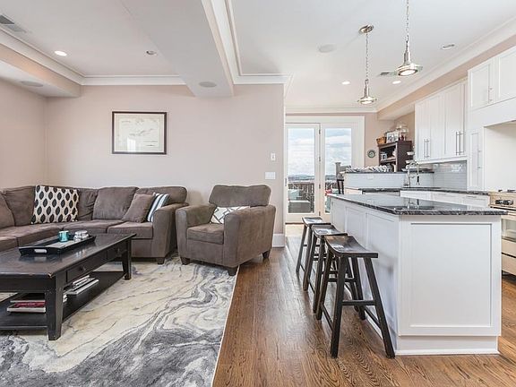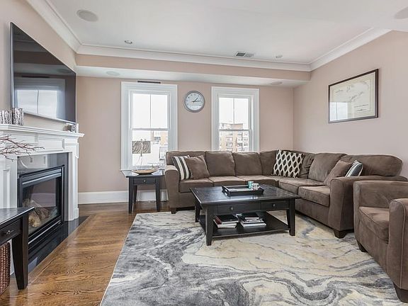 Enjoy breathtaking water views & elegantly designed interior finishes from this South Boston penthouse home. Boasting two private outdoor spaces, including roof deck with wet bar, this 2 bed, 2 full bathroom unit is a complete renovation as of 2011. One off street deeded parking space included, as well as huge private storage space in basement. Contemporary open kitchen features center island w/ built-in microwave & wine fridge, additional breakfast bar, 6 burner gas stove w/ pasta arm, stainless steel appliances & granite counters. Spacious living room with gas fireplace. High ceilings, dark hardwood floors & crown molding throughout the home. Large master bedroom with bay windows, abundant closet space & en suite bathroom. Absolutely stunning master bathroom with white marble & stone tiling, jacuzzi tub, & separate walk-in shower with waterfall shower head. Second full bathroom with similar finishes & skylight above shower. Pet friendly and just one block from the beach.
