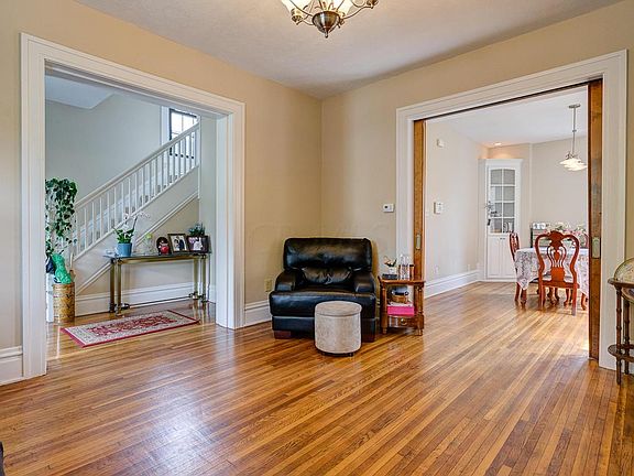 Wonderfully spacious 2 1/2 story brick home in Merion Village in a great location east of Schiller Park and very near to the new library. Impressive spaces with high ceilings, handsome woodwork, entry hall with original staircase, hardwood floors, wood burning fireplace and gracious dining room. Includes 2 full baths, finished 3rd floor, 2nd story covered terrace, very good closet space and very clean basement with newer mechanicals. Also, large full lot with privacy fencing, deck and over-sized garage. Groceries and restaurants are nearby.