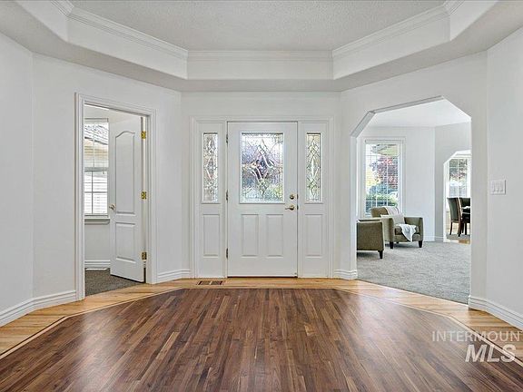 Tucked away in a tranquil cul-de-sac within the prestigious Meridian Greens community, this elegant single-level residence spans an expansive 0.42-acre lot, offering both privacy & refined comfort. Freshly updated with new interior paint & carpeting throughout, a grand foyer introduces a timeless design that captivates with a blend of sophistication & functionality, ideal for those who love to entertain. The formal living & dining rooms are adorned with tall windows that infuse the space with natural light. Steps away, an eat-in kitchen offers extensive cabinetry & gleaming hardwood floors that seamlessly transition into an adjoining family room, with built-in shelving & a charming fireplace. The primary suite serves as a private sanctuary, complete with bright bay windows, a quaint reading nook, & an ample walk-in closet. Outdoors, manicured grounds with raised garden beds & an extensive covered patio, create an idyllic setting for outdoor gatherings, with additional space for potential RV or boat parking.