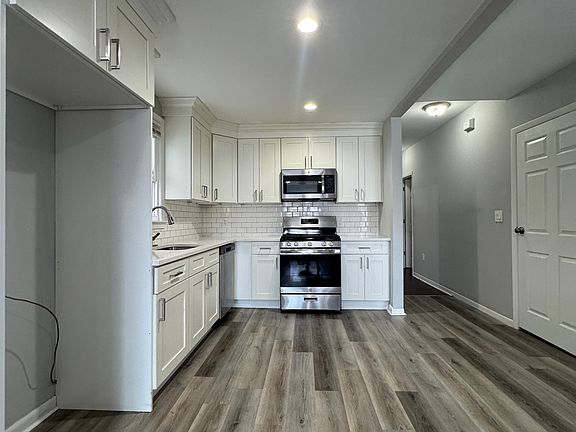 Spacious and well-maintained 3-bedroom apartment on the first floor, featuring three large bedrooms with beautiful hardwood floors throughout. Enjoy a renovated kitchen with modern finishes, plus separate dining and living rooms for comfortable everyday living and entertaining. This home offers access to a driveway for convenient off-street parking, laundry hookups in the basement, and additional storage space. Shared backyard access provides a great spot to relax outdoors. Ideally located near major highways and public transportation, making your commute and travel a breeze. Tenants pays gas and electric