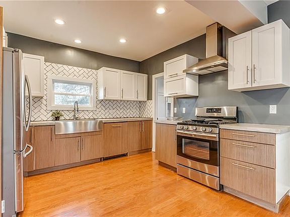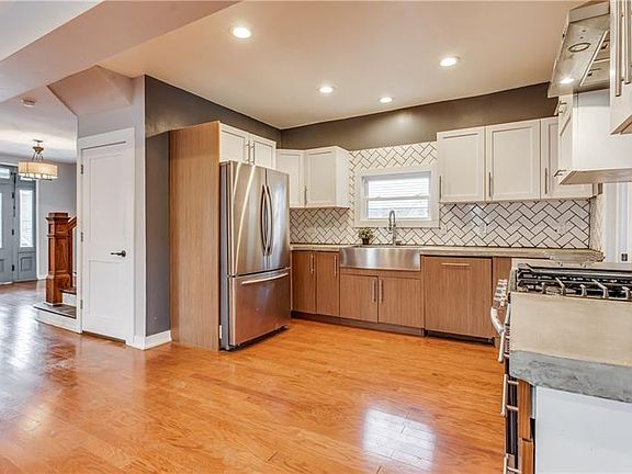 Welcome to this completely renovated 4 bedroom, 2 bath move-in ready house! The open concept first floor features a beautifully updated kitchen with walnut and white shaker cabinets, concrete countertops, and a butlers pantry. Both bathrooms feature subway tile and ceramic tile floors. There are hardwood floors throughout all three floors, including in the spacious and sunny living room that boasts recessed lighting. The third floor is an updated master suite complete with full bath, and laundry is conveniently located on the second floor. You won't have to update a thing with a new metal roof with a 50-year warranty, new plumbing, heating and electrical, tankless water heater, HVAC, ductwork, Pella Thermostar Windows and more! Although updated with modern style and convenience, including LED lights throughout, energy star rated insulation, hard wired smoke detectors, and more custom updates, you will love the original charm that shines through on this one-of-a-kind beauty!
