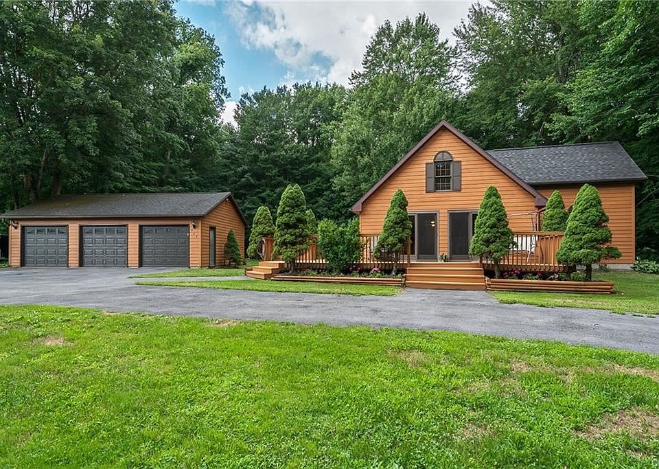 If you are looking for that gorgeous home located in a picturesque setting, this may be your home. Stunning 3 bedroom cape with 2 1/2 baths. Huge wrap around porch, spacious 3 bay detached garage with tons of driveway space (including a straight and circle driveway), plenty of yard in both front and back of the house. This is a house you will definitely want to see. Inside has all been repainted, new flooring, carpeting and lights throughout. Basement is finished (not included in square footage), and has two additional rooms that could be used as playrooms, or space for your guests. You will truly appreciate the walk in pantry in the basement, can literally hold food for a year. This home is as beautiful on the inside as it is outside. Nothing on the market that can compare!