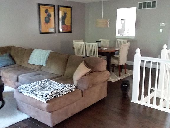 Lovely Brick Townhome offers: Ceramic Foyer with Hardwood Steps Leading to Open Floor Plan. Living Room and Dining Area Open and Bright with Gas Fireplace, New Hardwood flooring and French Door to Private Deck. Updated Eat in Kitchen with marble counter tops, offers Bay Window and Large Pantry. 2nd Level has 2nd Bedroom/Vaulted Ceiling/Walk in closet with Bath/Ceramic Flooring could be 2nd Master Suite. Master Suite has Vaulted Ceiling/Double Closets and Master Bath with Double Vanities and Ceramic Flooring. 1st Level Adjacent Foyer is a Family Room or Exercise Room. Walk to community pool, park, courts, fields, community center, shopping and restaurants.