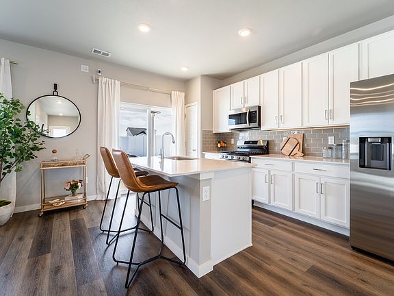 Estimated Completion, March 2023. This open concept 2-story provides plenty of space for the future with a main level flex room, a spacious kitchen with a pantry, and an optional extended island. The upper-level features laundry, large master suite with ensuite bath & walk-in closet, and 2 additional bedrooms. Standard features include LED lights, a tankless water heater, stainless steel appliances, covered entry, and a 2-car garage.