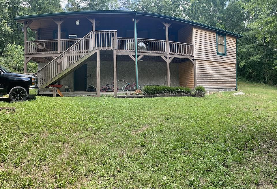 Looking for a private log cabin that is close to shops and restaurants? This is the home for you! This home offers a private driveway with a large relaxing front porch to enjoy the summer evenings. Upon entering the home you will love the split bedroom layout. This home offers a beautiful living room open to the dinning room, and a galley style kitchen. The master bedroom is opposite from the other bedrooms and offers his and her closet and a large bathroom with double vanities and beautiful tile shower. Down the hall you will find the laundry room, main bathroom that is large with plenty of room, and two more bedrooms one of which is over sized with 2 closets. From the hall follow the steps downstairs and enjoy the beautifully finished basement offering a